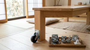 昇降式テーブル、特に重量のある電動式や一本脚のモデルは、その自重と昇降時の圧力によって床に強い負荷がかかります。賃貸住宅などで床のダメージが気になる場合は、設置前に必ず保護マットやラグを敷くようにしましょう。
