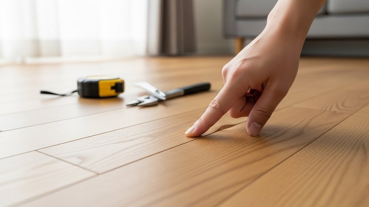 水濡れ起因の膨張は範囲がはっきりしている場合が多く、床板の継ぎ目に沿って波打つように広がります。発見時にはまず水の拭き取りと換気、除湿を行い、状況を写真で記録しておくと後の対応がスムーズです。床下の漏水や配管からの浸水が疑われる場合は、専門業者に点検してもらうことをおすすめします。