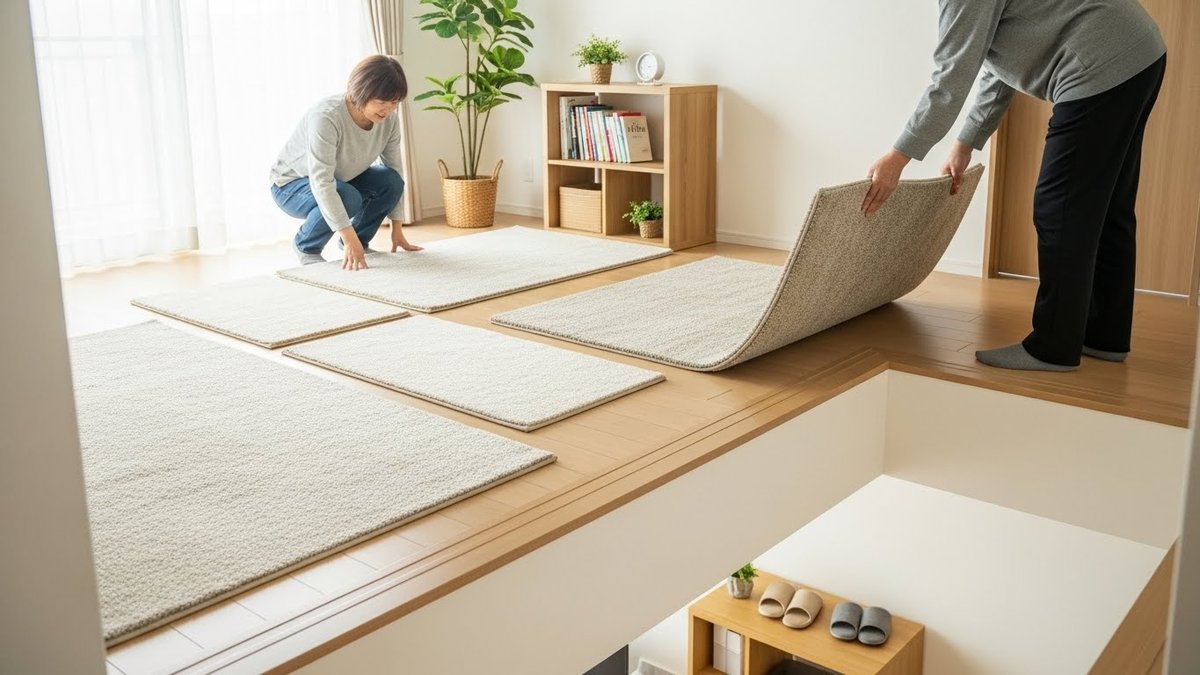 音を軽減するためには、複数の方法を組み合わせるのが良いです。たとえば、厚手のラグを敷いた上にジョイントマットを重ねると低音域も含めて遮音性が高まります。日常的に気を付けることとしては、重い物を床に落とさない、ドアの開閉を静かにするなどの習慣も大切です。短期で試せる工夫をまず取り入れてみてください。
