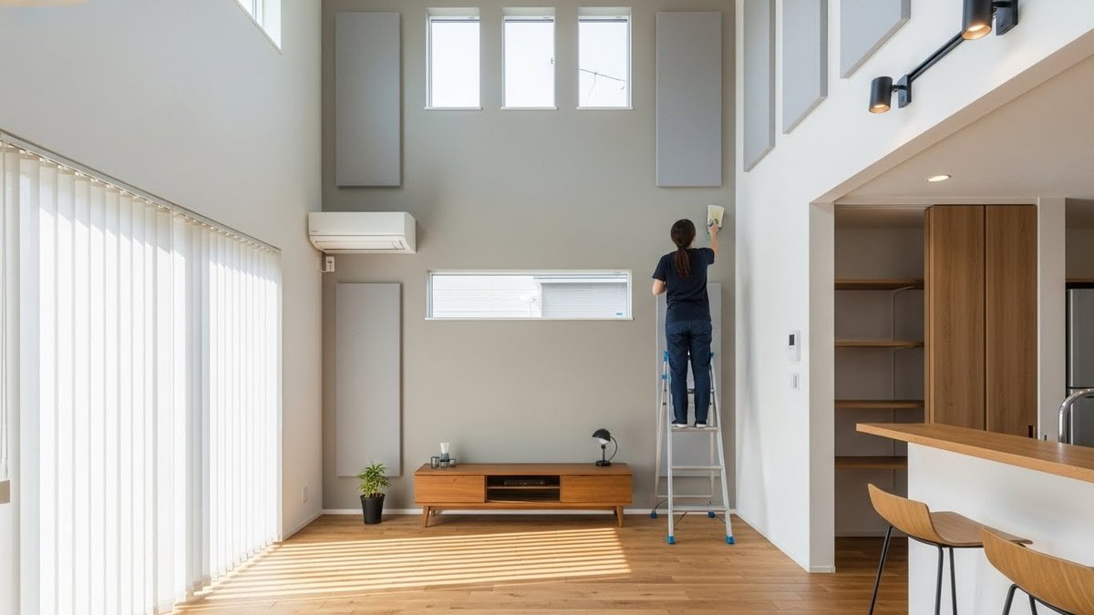 対策としては吸音性能のある材料を使うことが有効です。天井材や壁面に吸音パネルを取り入れたり、カーテンやラグ、家具を増やして音を分散させると反響を和らげられます。吹き抜けがある場合は開放感を保ちながら音対策を講じるバランスが重要です。