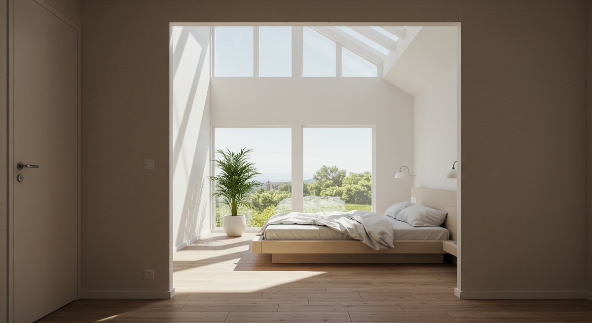 窓の位置はベッドや家具配置に大きく影響します。ベッドヘッドを窓下に置かない、壁面を収納にするか装飾にするかを先に決めておくと窓の高さや大きさを最適化しやすくなります。