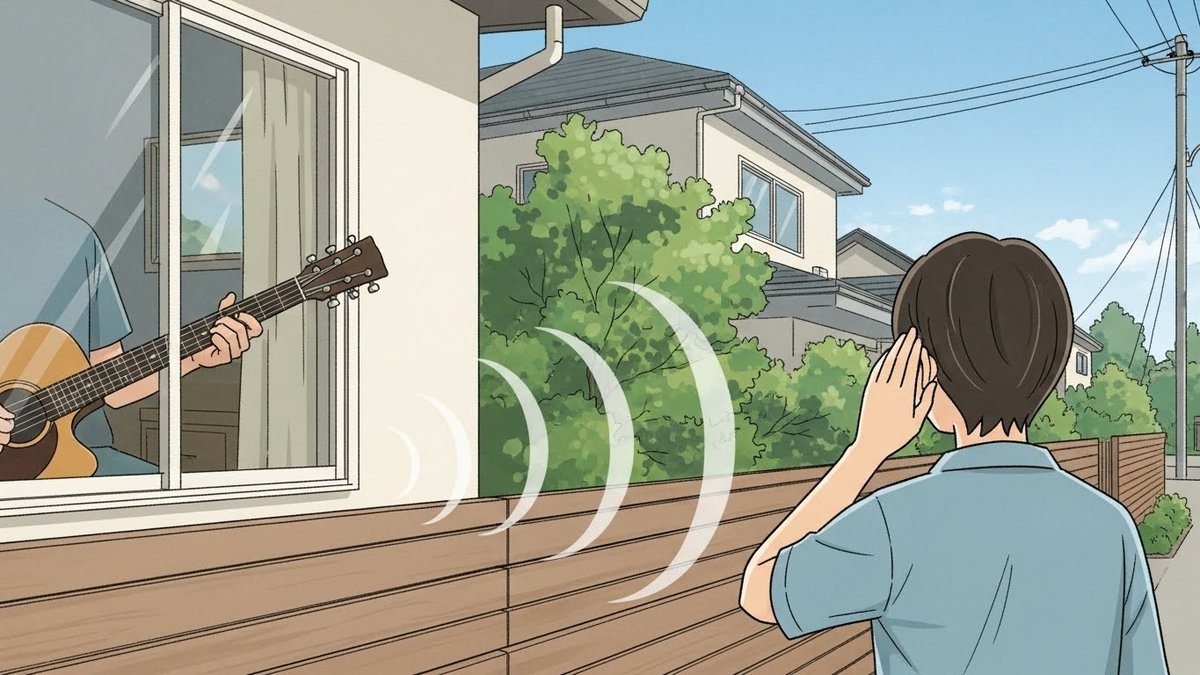 低音は壁や床を通じて遠くまで伝わりやすく、隣家での不快感につながりやすい特徴があります。特に30〜200Hzの帯域は減衰しにくく、建物の共鳴も誘発します。低音対策は防振と質量の追加が鍵になります。