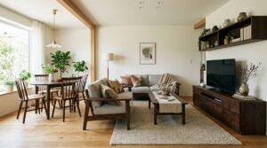 ・無垢材のダイニングテーブルと質感を合わせる