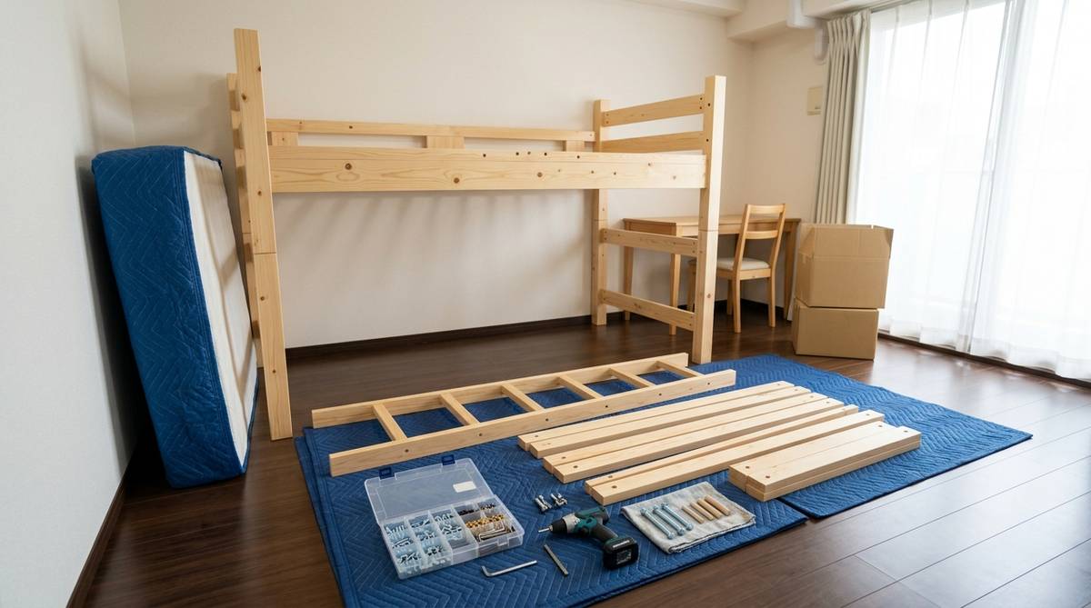 実は、引っ越し業者に依頼する場合でも、システムベッドの解体と組み立ては別料金が発生したり、事前の準備を求められたりすることが一般的です。自分で解体の仕組みを知っておけば、こうしたコストを抑えられるだけでなく、急な予定変更にも柔軟に対応できるようになります。移動の直前に慌てて作業するのではなく、余裕を持って「運べるサイズ」にしておくことが、トラブルを防ぐ秘訣です。